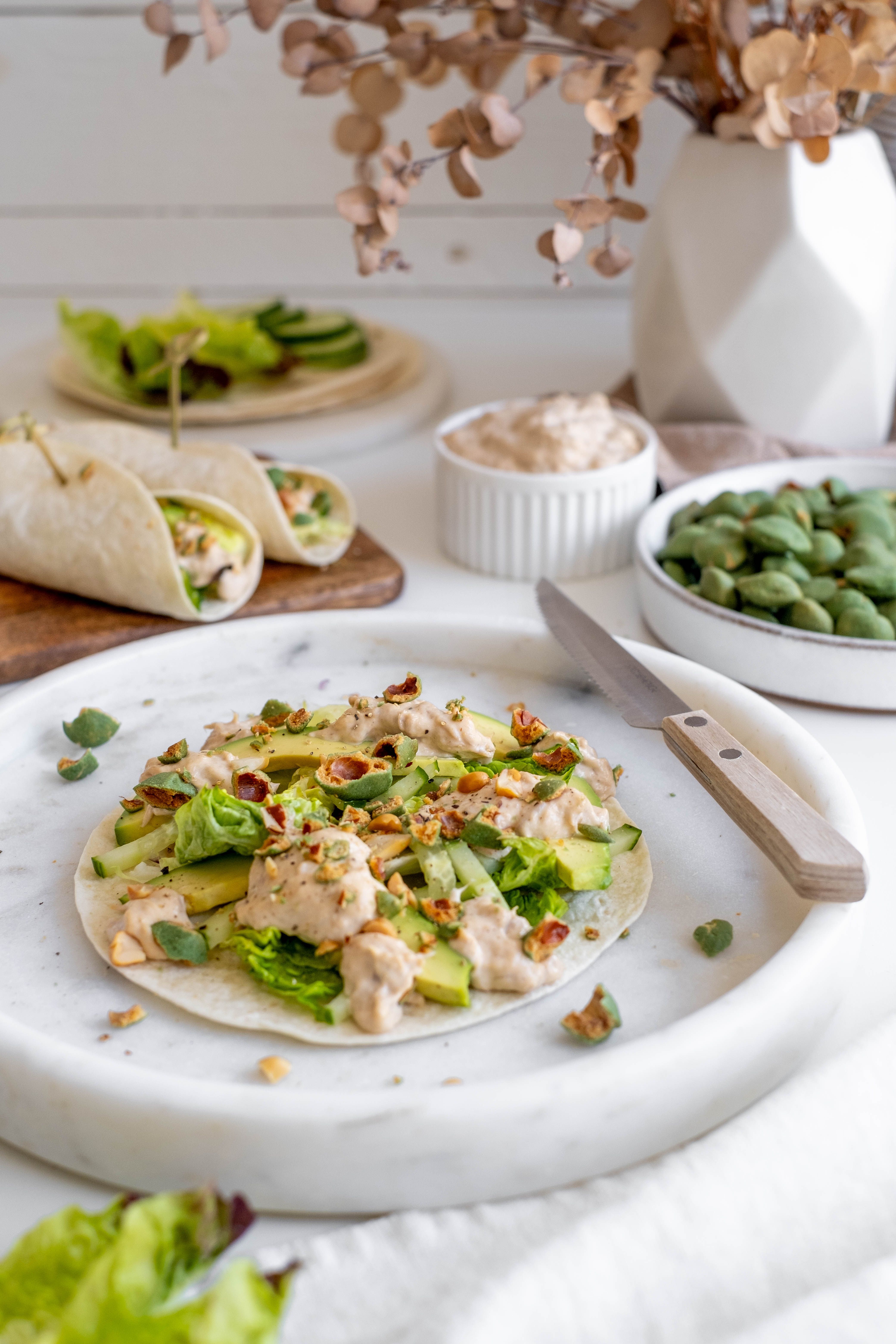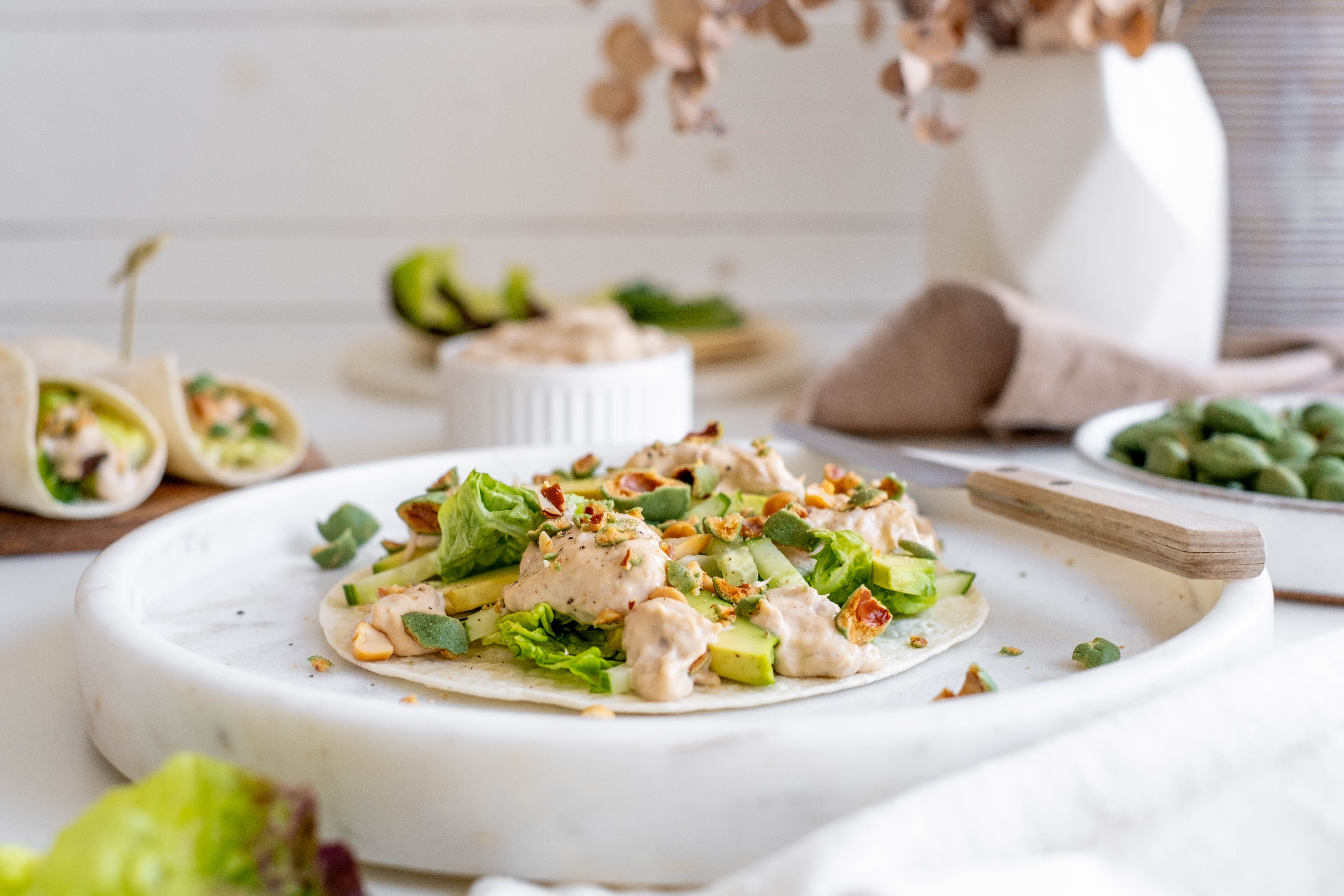 Stéphanie Bex maakt voor ons een verfijnd apéritiefhapje dat meteen in de smaak valt. Deze Neptunus wrap combineert de zachte tonijnsalade van Charles met romige avocado, frisse groentereepjes en een verrassende crunch van pittige wasabinootjes.